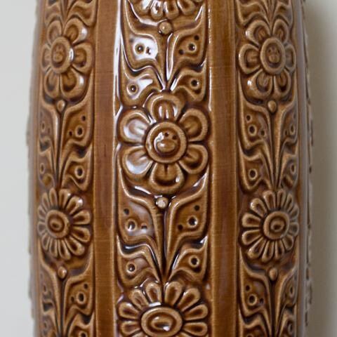 カフェオレ色のボディーに花の模様が型押しされてます!