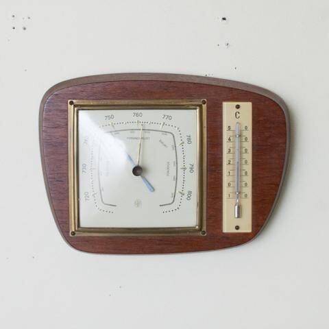 DENMARK SOLID TEAK BAROMETER & THERMOMETER