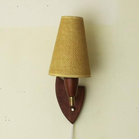 DENMARK TEAK WALL LAMP/VINTAGE KHAKI SHADE