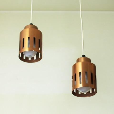 カッパー色の小振りなシェードに開けられたスリットから美しく温かな灯りが漏れだします!