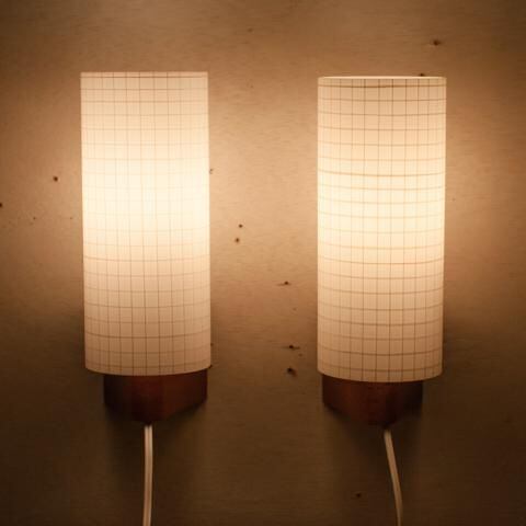 DENMARK TEAK/WHITE PRESSING GLASS SHADE WALL LAMP SET