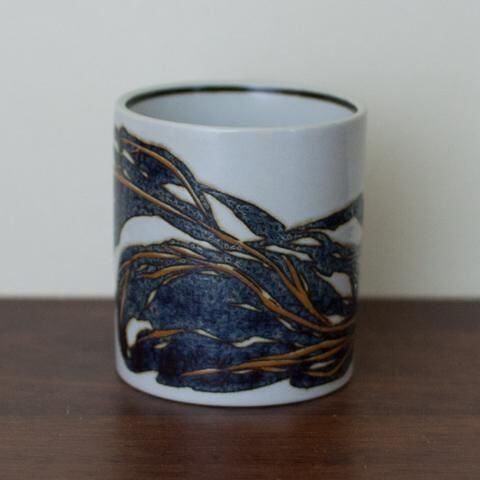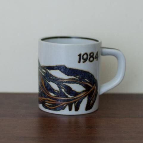 1984年のイヤーマグ 手描きで表現された抽象的な素敵な模様です! 多少の使用感はありますが良い状態です Item code:X-34 Size:直径6.5cm H7.5cm Material:CERAMIC Designer:Ivan Weiss Age:1984 Made:DENMARK