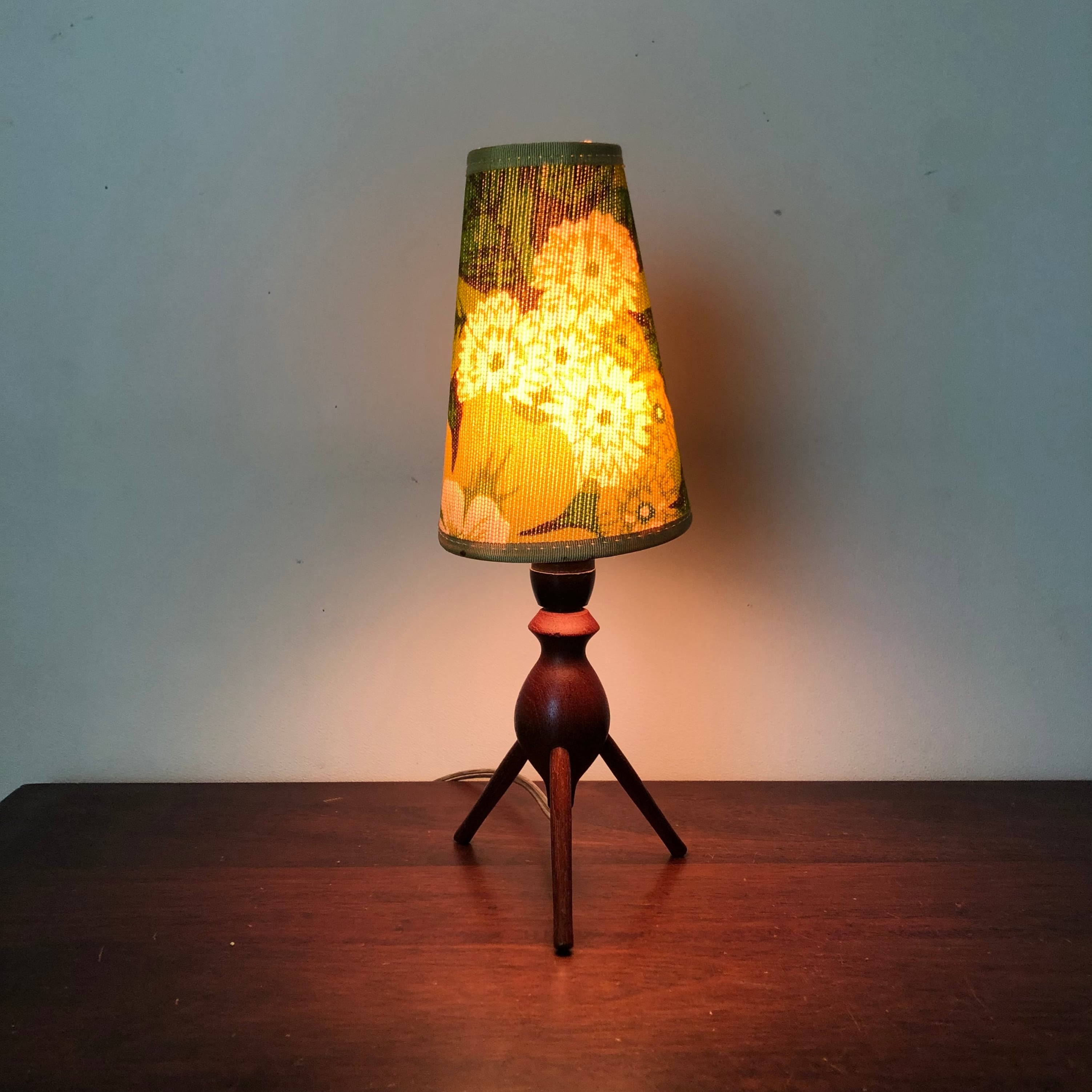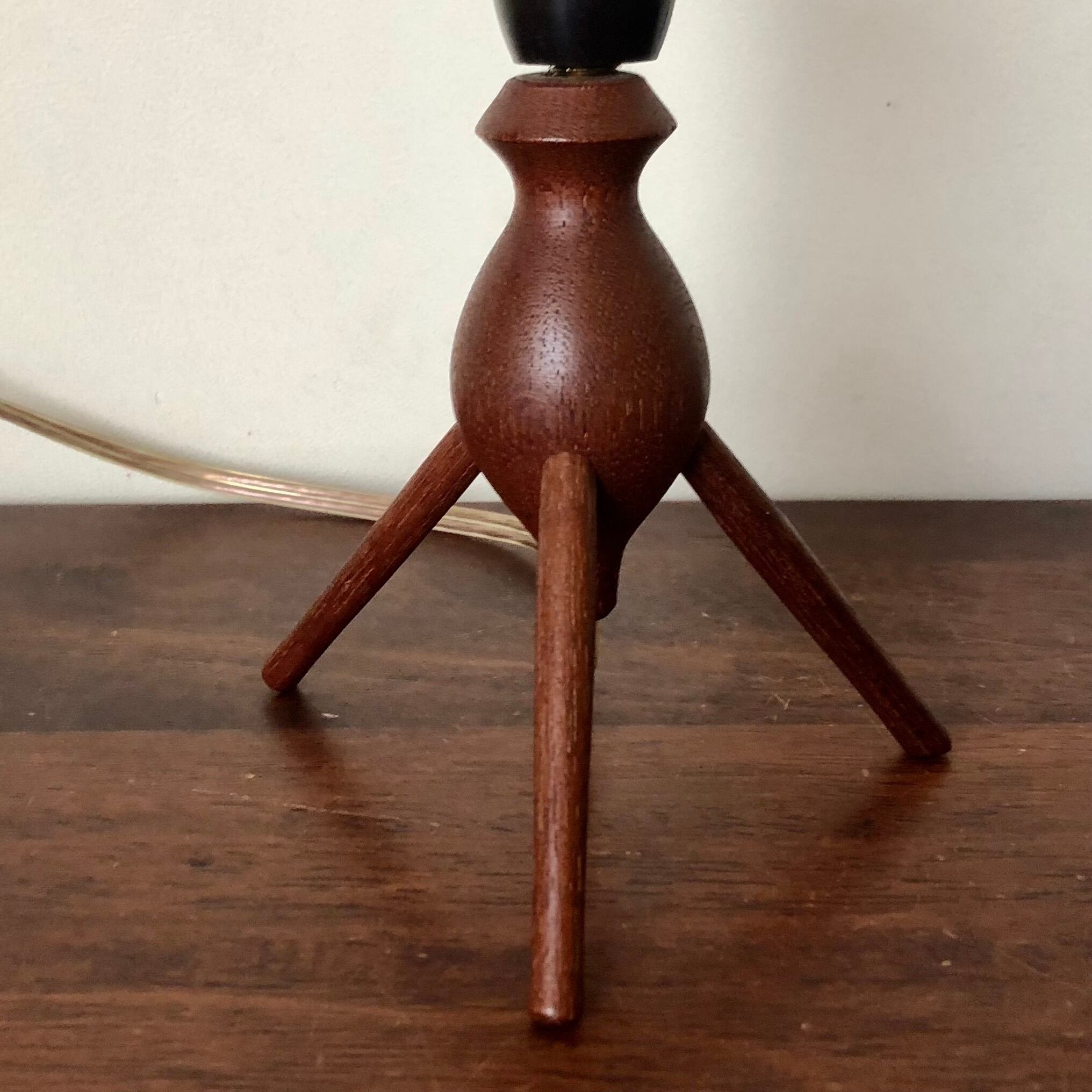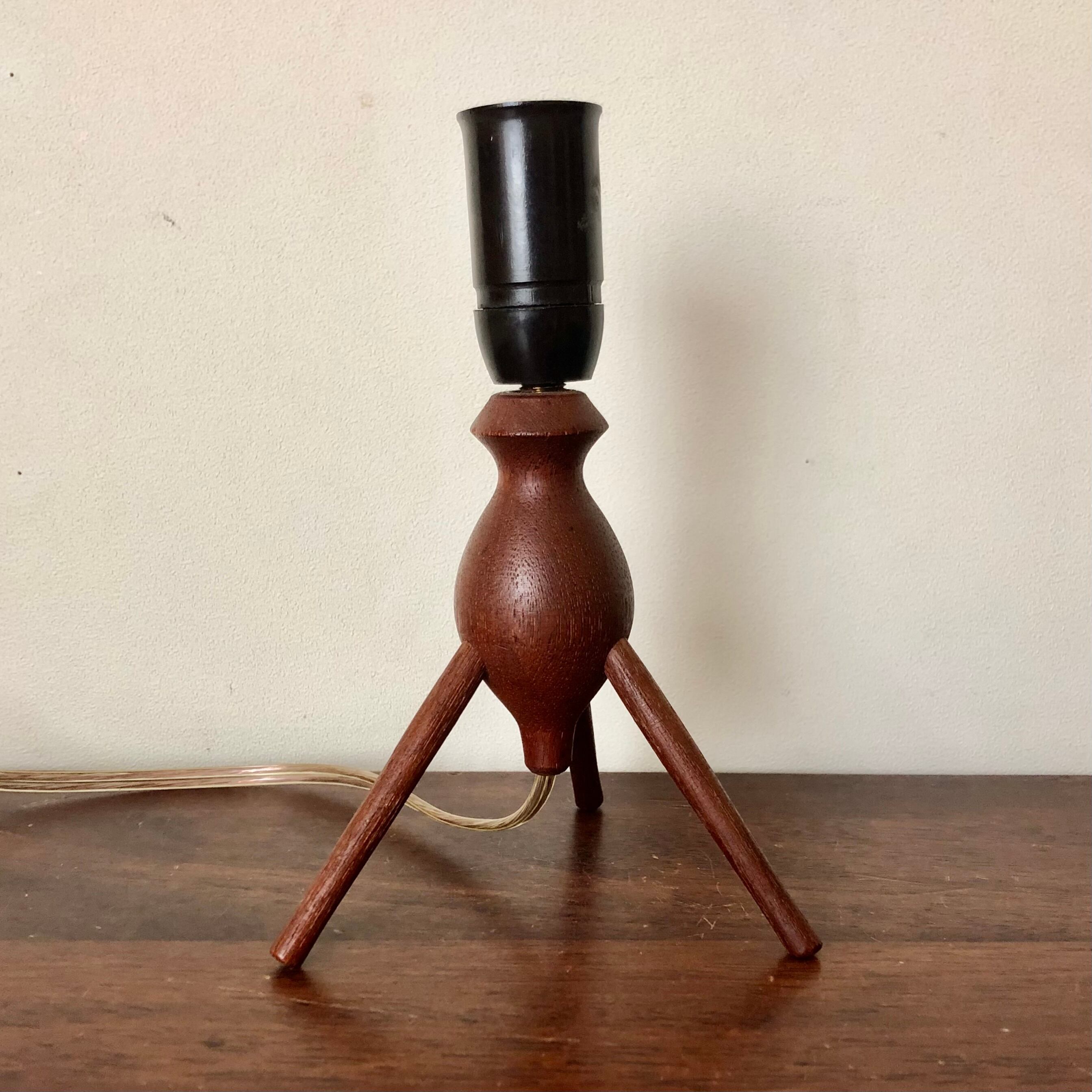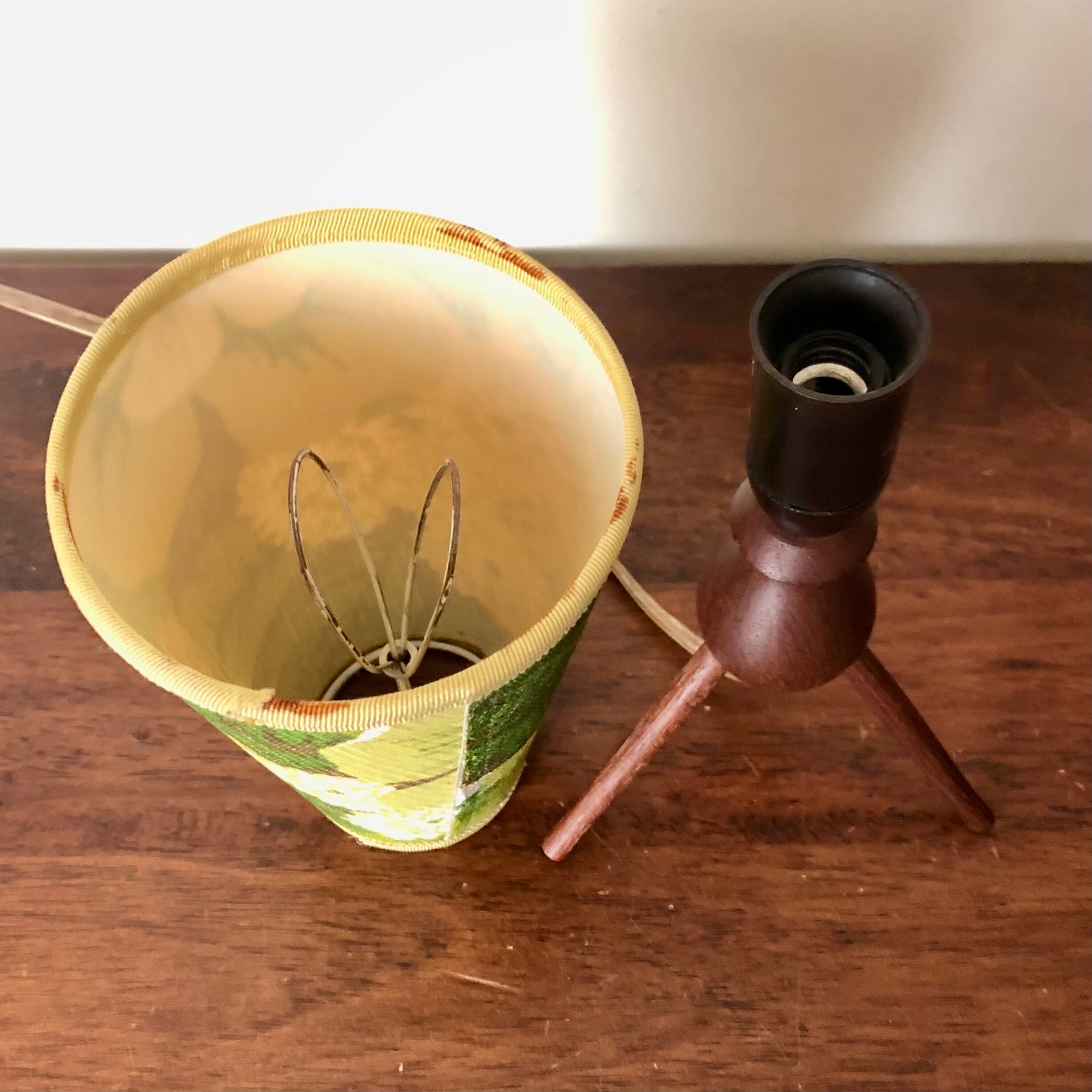 DENMARK TEAK TRIPOD TABLE LAMP/VINTAGE SHADE (B)