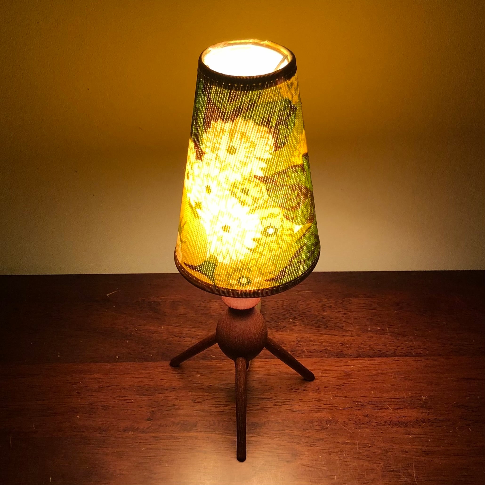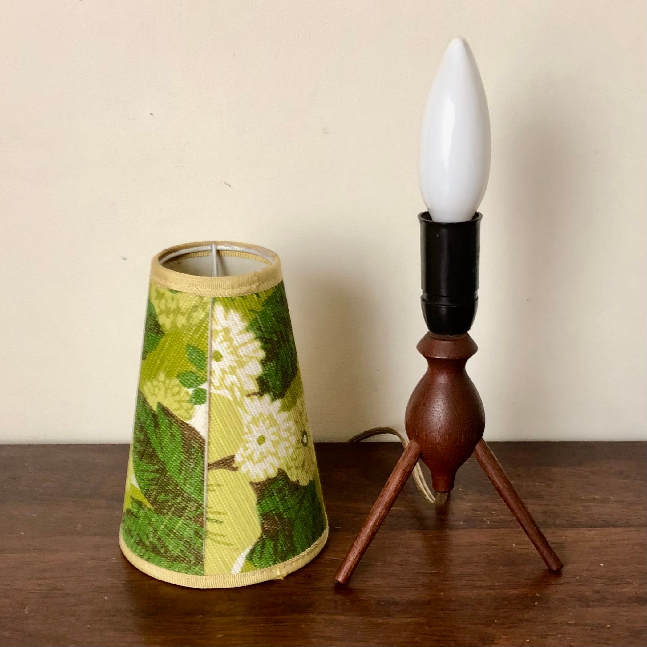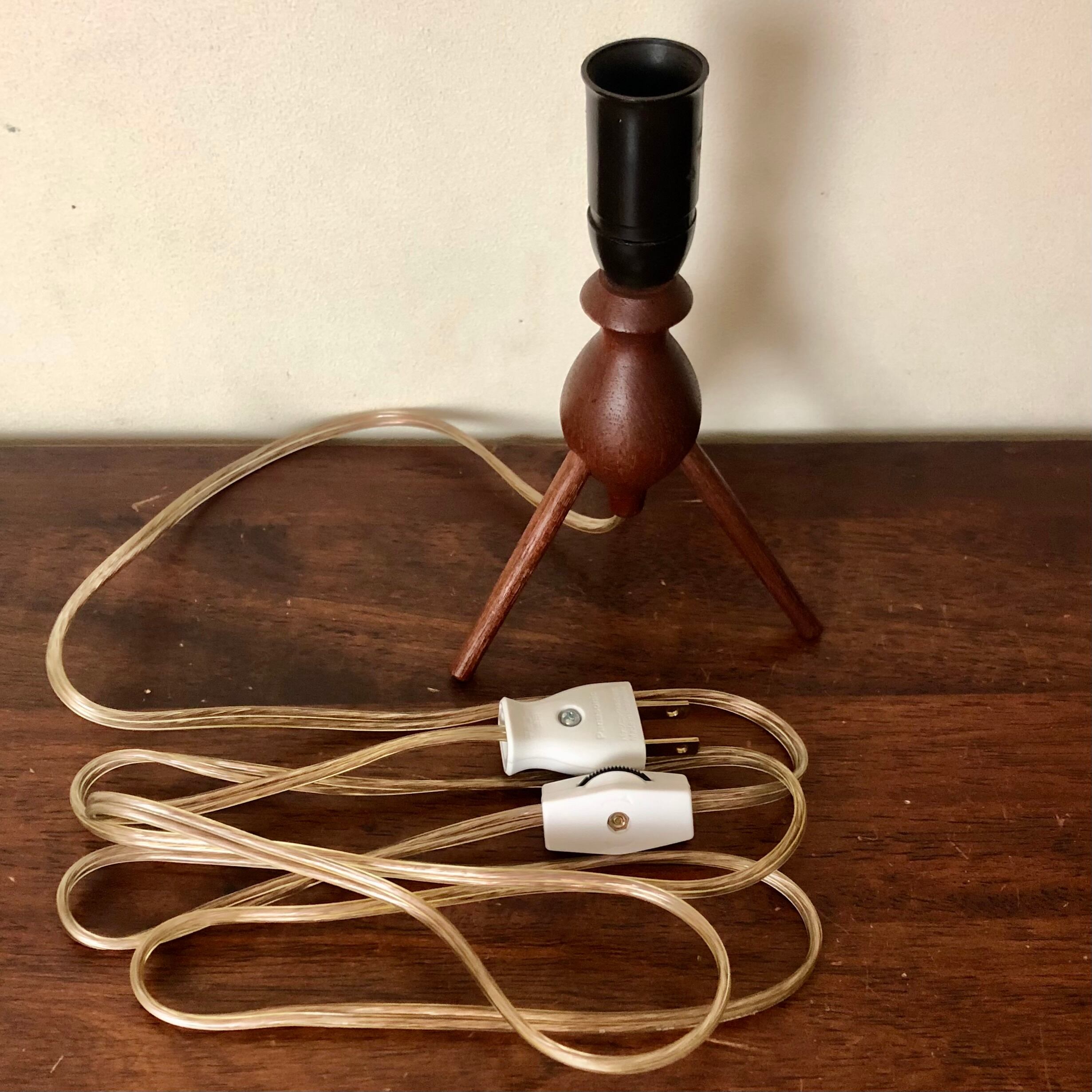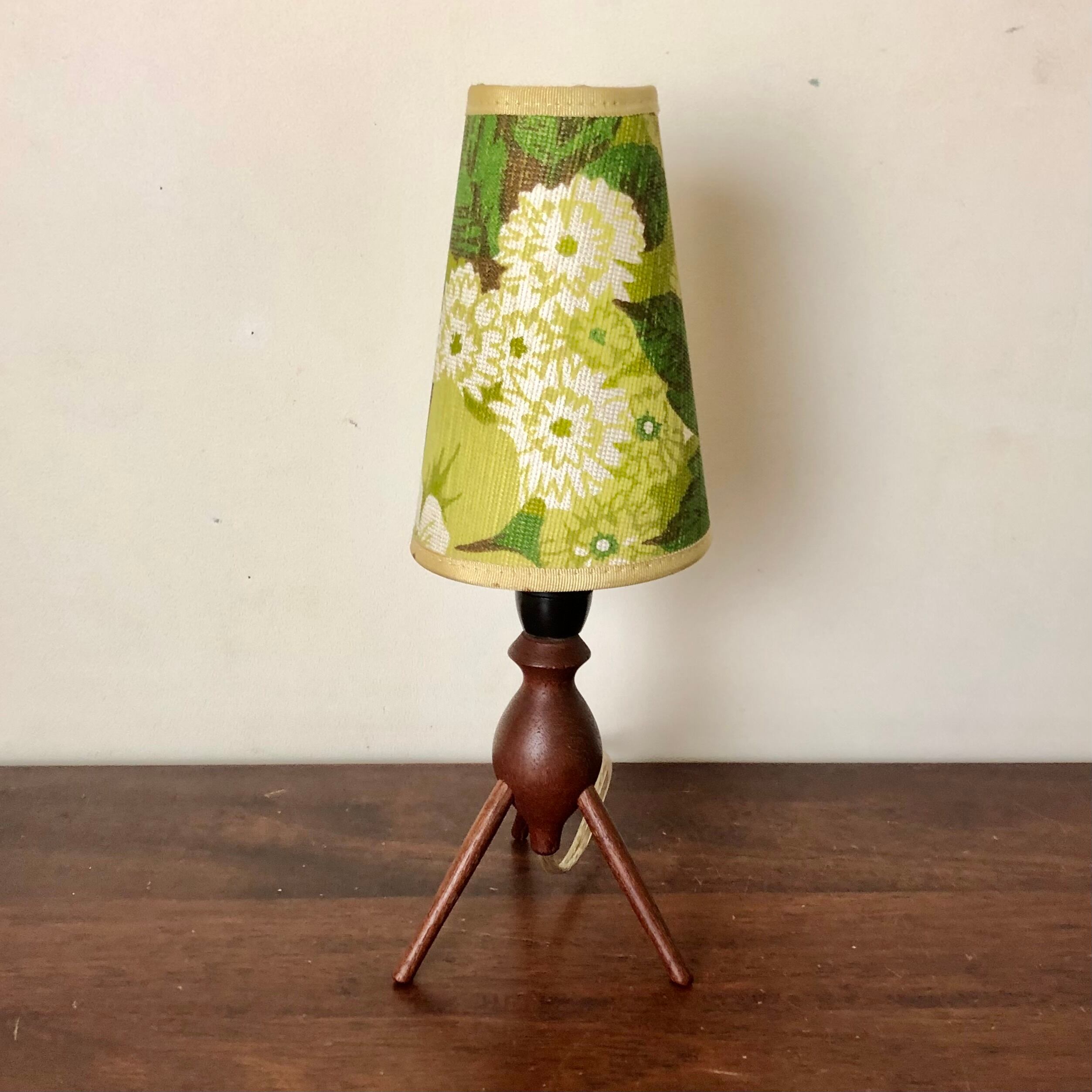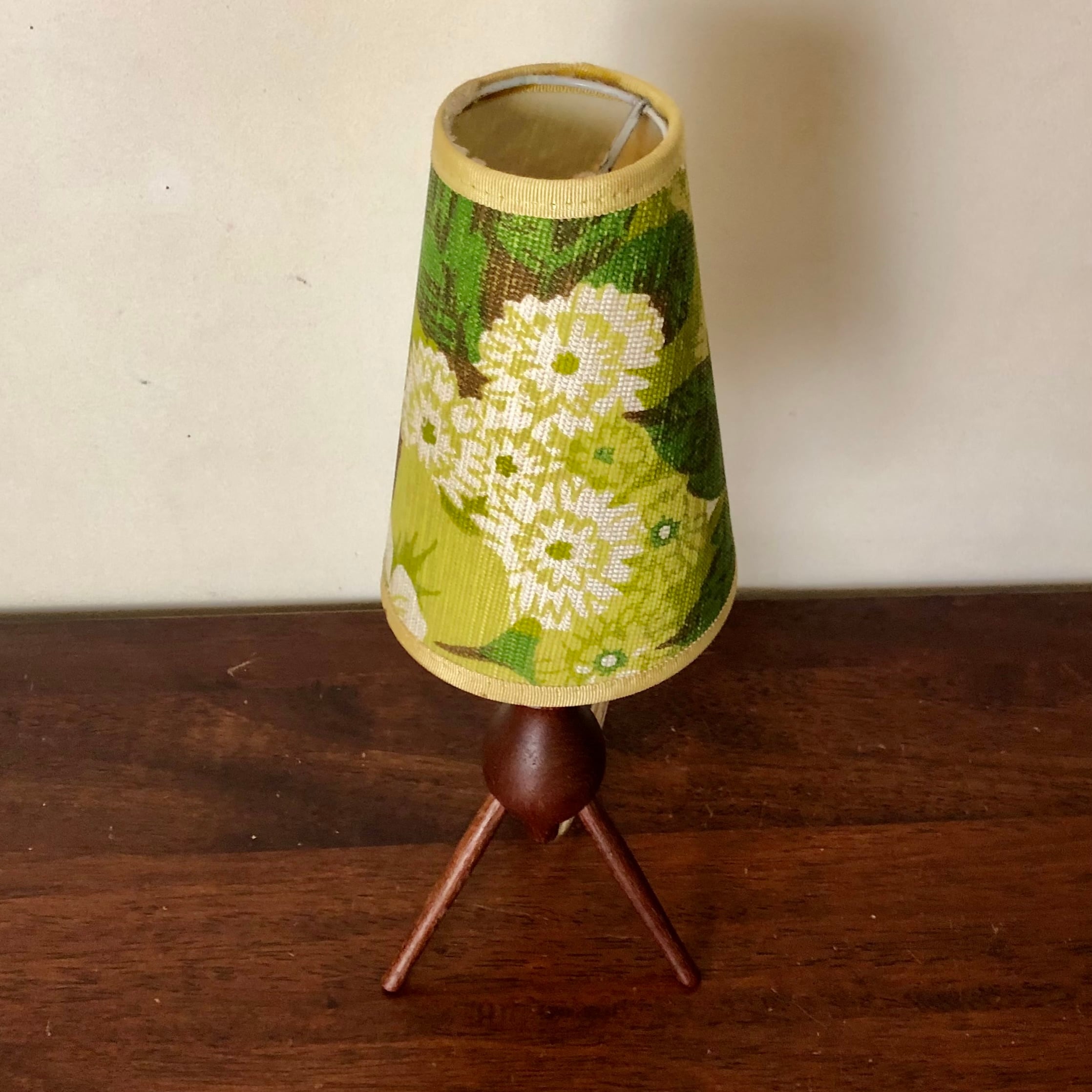 DENMARK TEAK TRIPOD TABLE LAMP/VINTAGE SHADE (B)