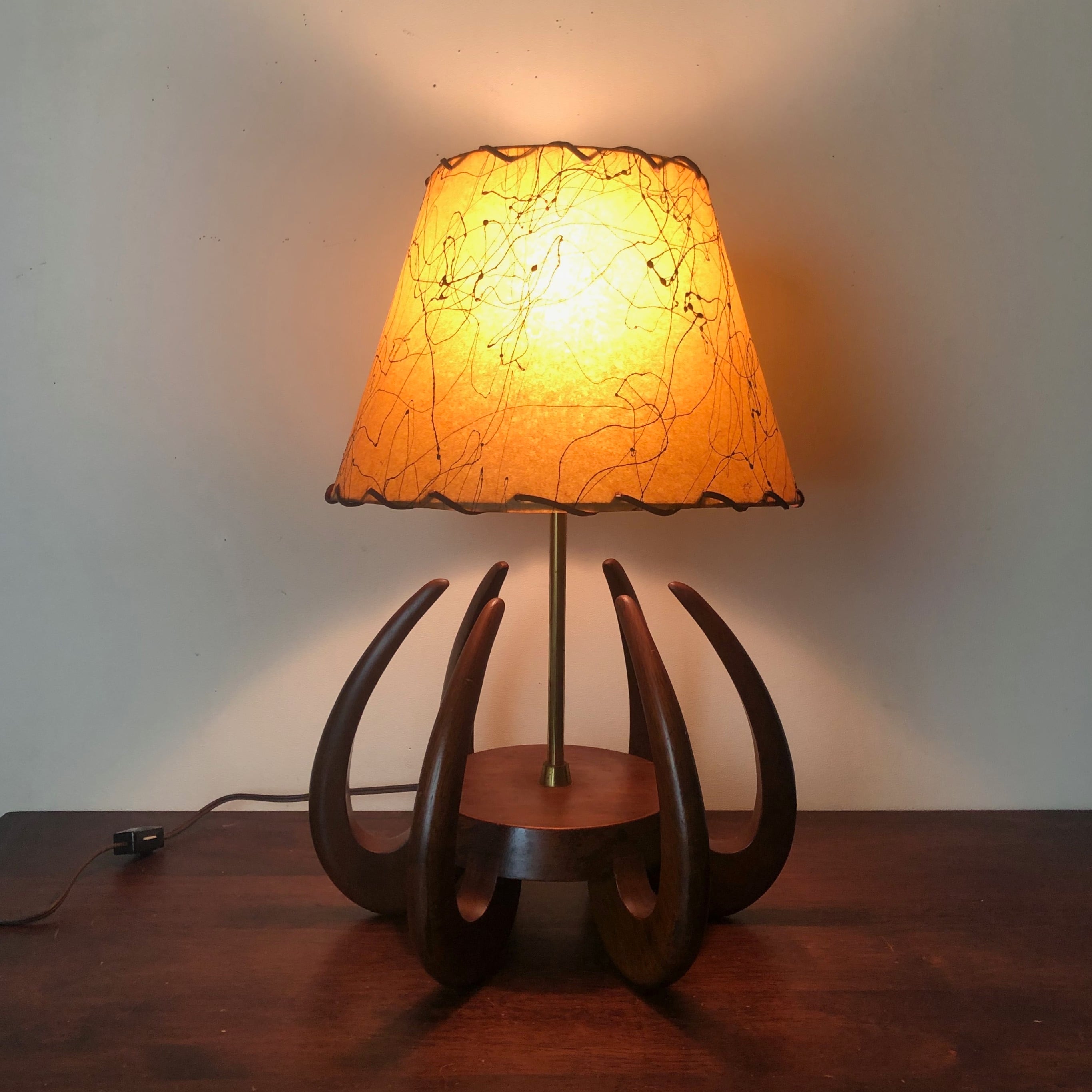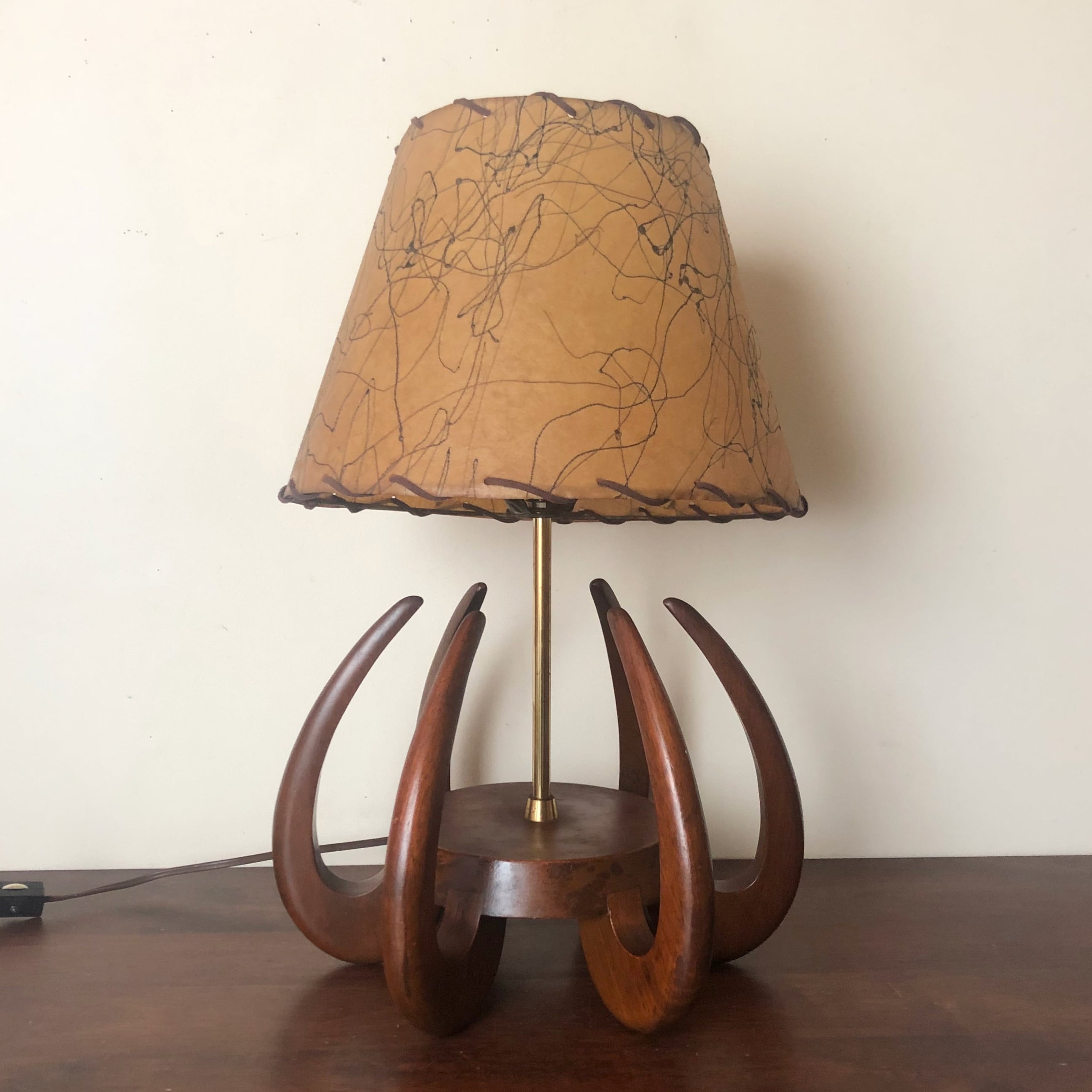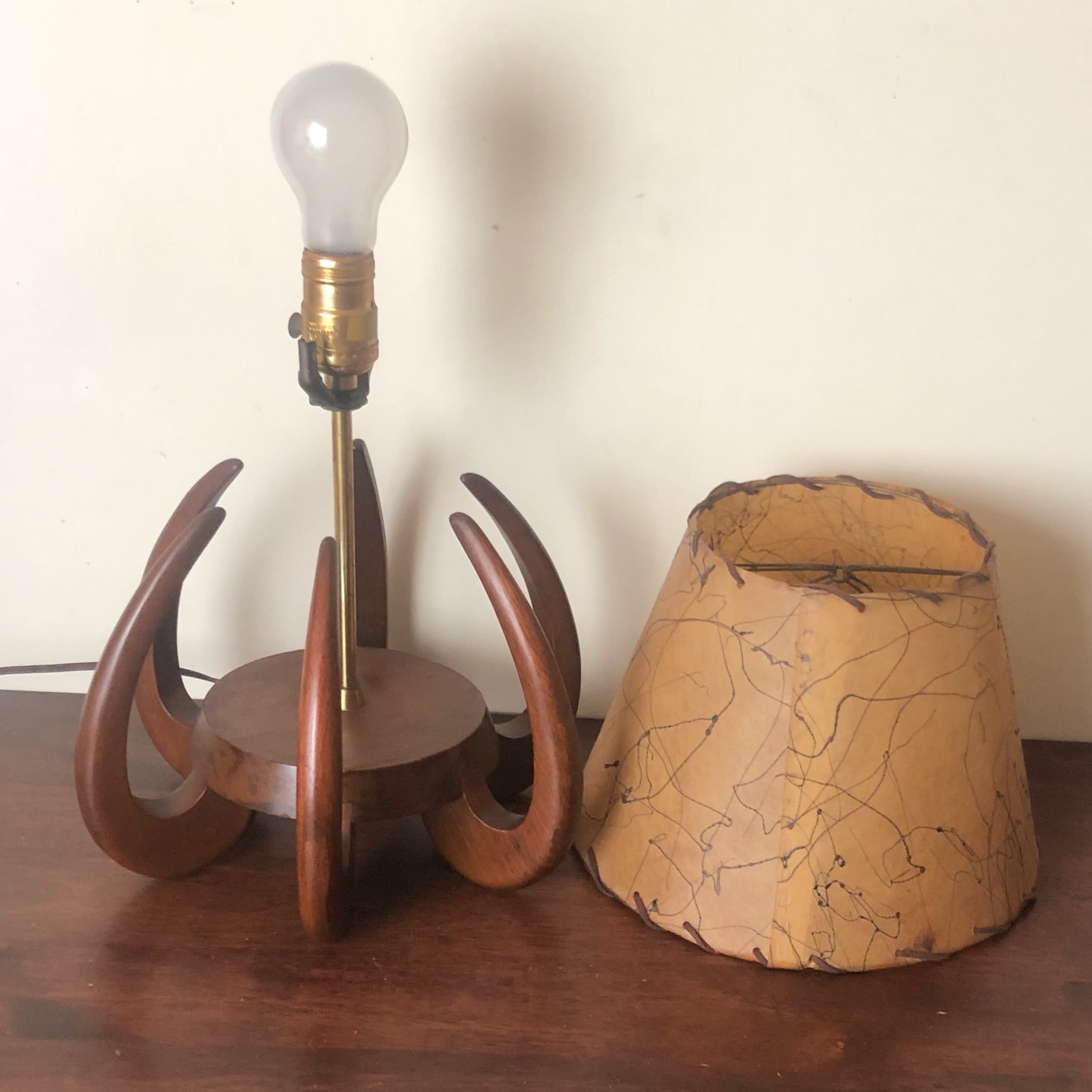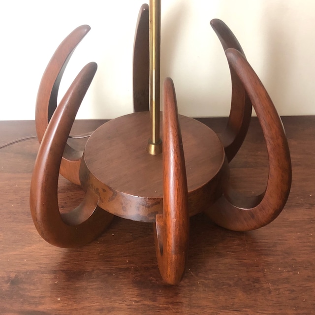 U.S.A SOLID WOOD( WALNUT? )1950'S STYLE TABLE LAMP