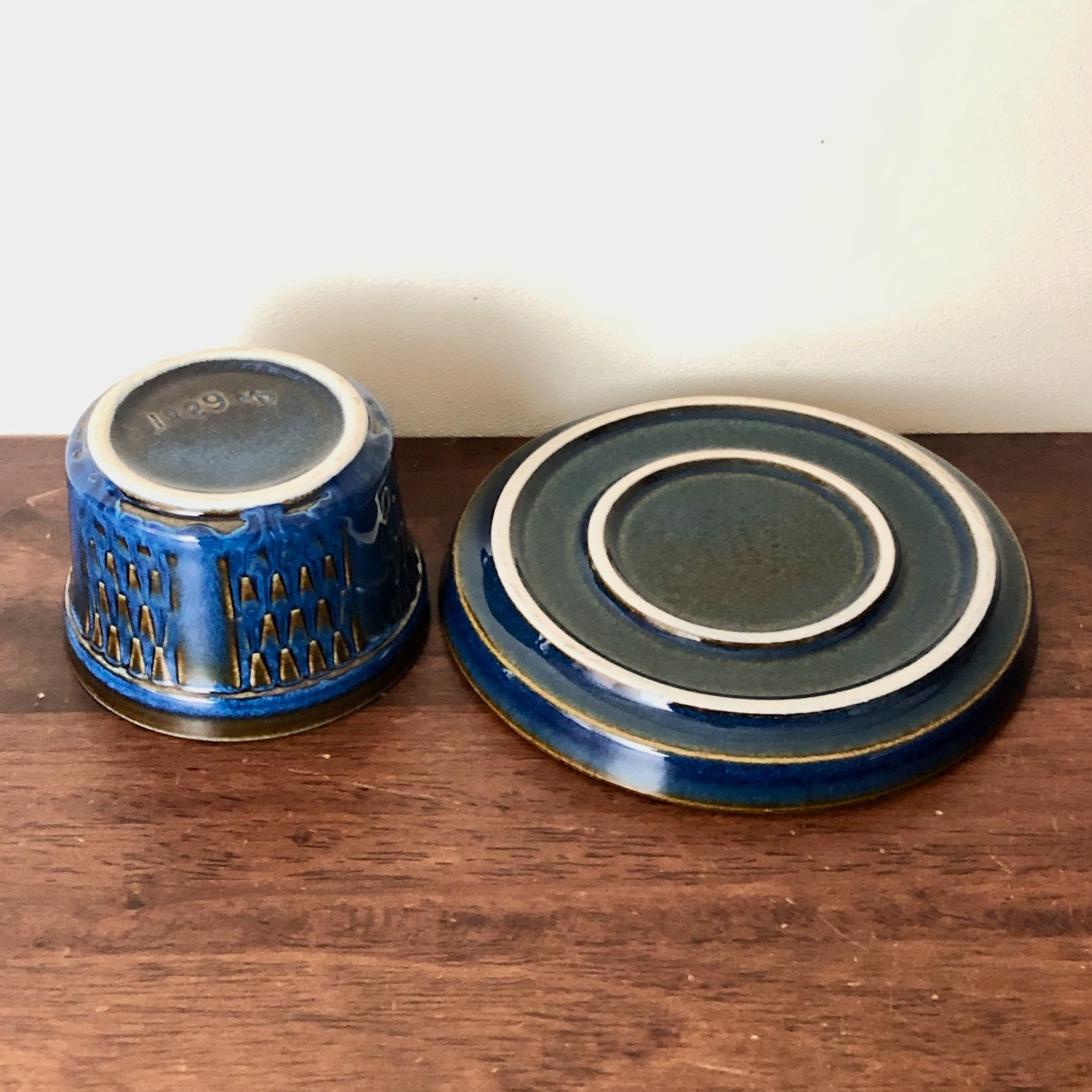 深い碧ボディーにきれいな焦茶の釉薬がランダムに顔をだしています!